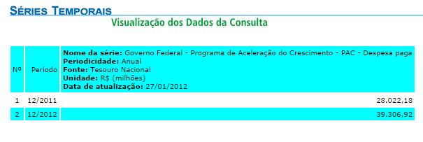 Os investimentos e gastos do PAC2, no período 2011-2013, somaram R$ 773 bilhões. Os gastos com o programa em 2011 e 2012, segundo o Tesouro Nacional, somam mais de R4 67 bilhões, como mostra a tabela abaixo: