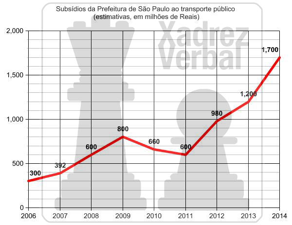 O subsídio, além de volumoso (na ordem de 1.7 bilhão de Reais em 2014), é, de acordo com a auditoria da Ernst&Young já citada, inflacionado: “A auditoria revela que, desde 2008, paga-se mais do que o previsto em contrato para as empresas e cooperativas por passageiro transportado.”, incluindo remuneração por viagens não realizadas. Temos uma relação contraditória: um negócio lucrativo que, em boa parte de seus custos, é subsidiado com dinheiro público. Existe uma privatização dos lucros e uma socialização dos prejuízos. Além disso, outra contradição se faz presente nos subsídios estatais ao transporte. O debate político sobre redução de custos e financiamento do transporte sempre esbarra em dois aspectos importantes em uma cidade como São Paulo; preço do combustível e trânsito, fazendo com que os ônibus fiquem mais tempo parados, logo, gerando custos.