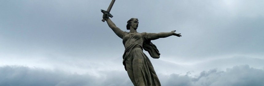A estátua “A Mãe Rússia Chama”, mencionada no podcast e que homenageia os mortos em Stalingrado