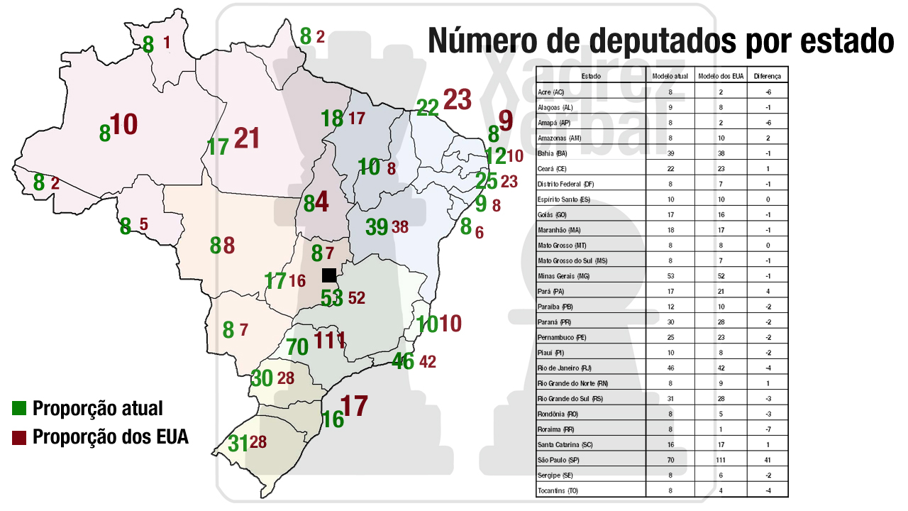 E se o Brasil adotasse a proporção do federalismo dos EUA?