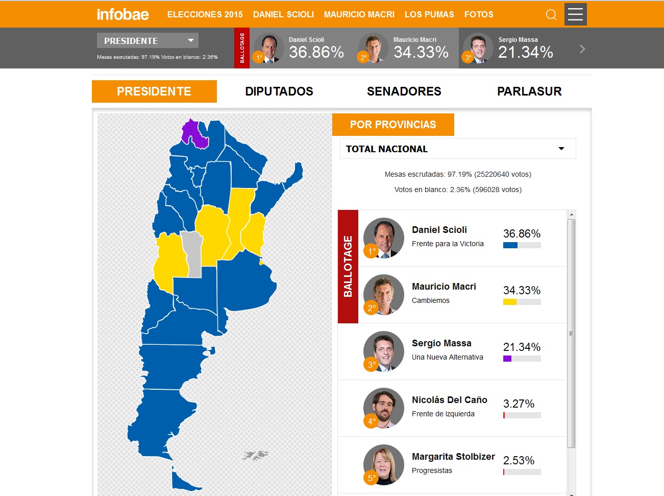Mapa dos candidatos vencedores em cada província forma curiosamente a camisa do Club Atlético Boca Juniors
