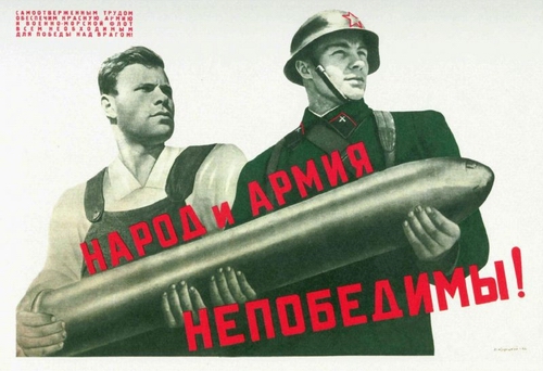 Soldados e Operários – 6 Publicado em 4 de novembro de 2015 por Xadrez Verbal Deixe um comentário URSS: “Povo e Exército. Invencíveis”. O operário e o soldado partilham da mesma munição, que um fabrica e o outro utiliza. Anterior Avançar Voltar ao Economia de Guerra, propaganda e arte: pôsteres das Guerras Mundiais
