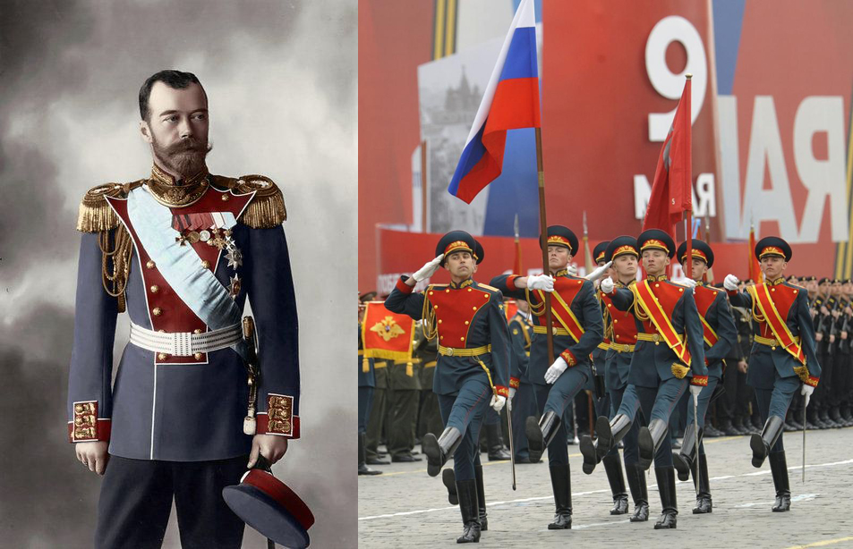 Essa ligação é tão forte que Putin progressivamente reforma a identidade do Estado russo para algo mais próximo da Igreja Ortodoxa e dos tempos czaristas. As forças armadas russas progressivamente estão mudando sua identidade da estrela vermelha para o laranja e preto imperial, os regimentos militares russos estão mudando suas insígnias para símbolos e bandeiras com a estética pré-1917. A recém-criada Guarda Presidencial usa uniformes do mesmo modelo da guarda do Czar. Putin foi agente da KGB não apenas por eventuais razões ideológicas, mas por razões de Estado. Os mesmos militares que serviram ao Império do Brasil serviram sob a bandeira republicana, em mero exemplo ilustrativo. A identidade do próprio governo Putin tem sido fortalecida em bases do antigo império, a Terceira Roma, ao ponto do conhecido busto de Putin caracterizado como imperador romano.