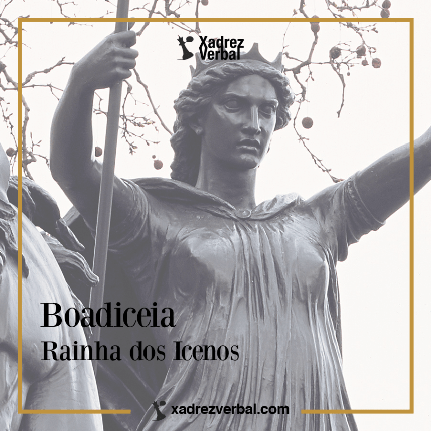 Boadiceia, rainha dos Icenos, povo celta da Grã-Bretanha. Para vingar suas filhas, liderou rebelião contra o domínio romano no ano 60.