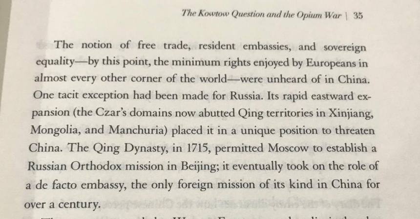 Adendo no dia 10/09: O candidato Henrique do Vale me mandou uma foto do livro On China, do Kissinger, que mostra que a Rússia possuiu uma embaixada permanente na monarquia Qing, o que permite recurso em um dos itens da questão da Guerra do Ópio